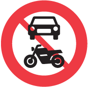 Skeltið setir forboð fyri allari koyring báðar vegir millum skeltið og næsta vegamót. Við undirskelti, kann forboðið verða avmarkað til bert at hava gildi fyri gjøgnumkoyring ella í ávísum tíðarbilum.