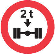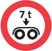 Skeltið setir forboð fyri, at lastvognur ella vognarað við total vekt tilsamans meiri enn 3,5 t. fer framum annað akfar, tó ikki súklu ella prutl við tveimum hjólum.