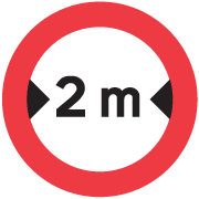 Skeltið setir forboð fyri koyring við akfari, sum við lassi er breiðari enn víst..