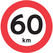 Skeltið setir forboð fyri at koyra við meiri ferð enn tilskilað tal av km um tíman.
